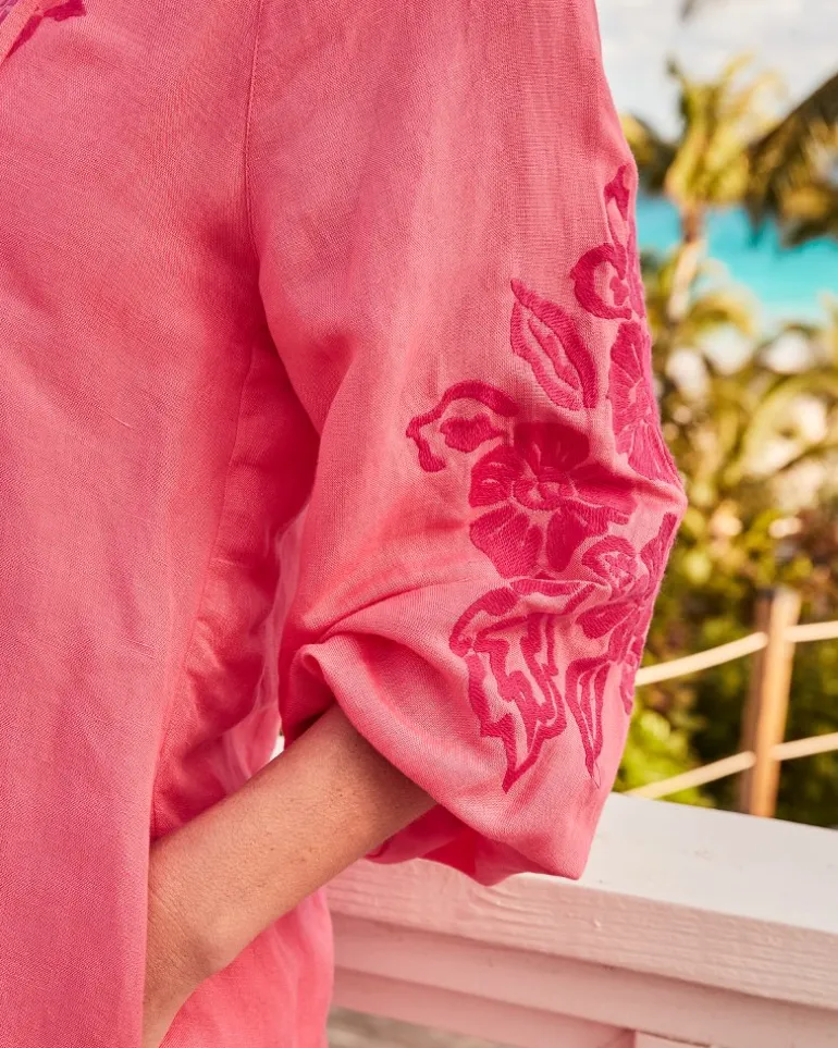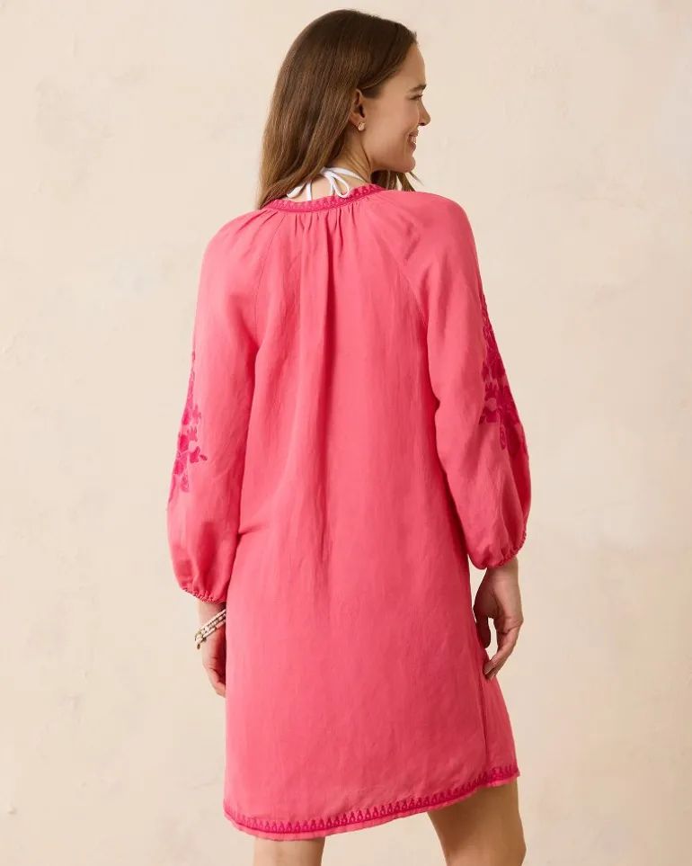 Outlet Tommy Bahama St. Lucia Linen-Blend Embroidered Coverup Dress Coral Coast